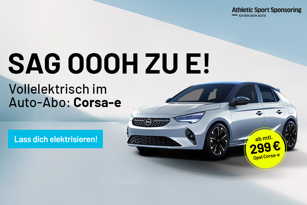 Unser Partner Athletic Sport Sponsoring elektrisiert mal wieder mit unschlagbaren Angeboten: Den Opel Corsa-e gibt es jetzt bereits ab 299 € monatlich im entspannten Auto-Abo.